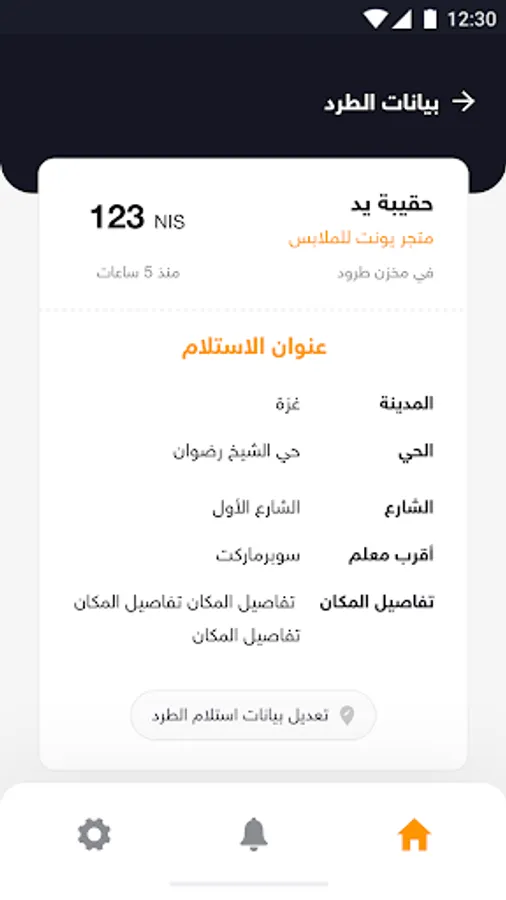Local parcel tracking application - allows parcel customers to track local e-commerce parcels, modify receiving addresses, add notes, report any problem with parcels, delay or cancel parcel receipt, communicate with the delivery captain, and pay for the parcel via Jawwal Bay.