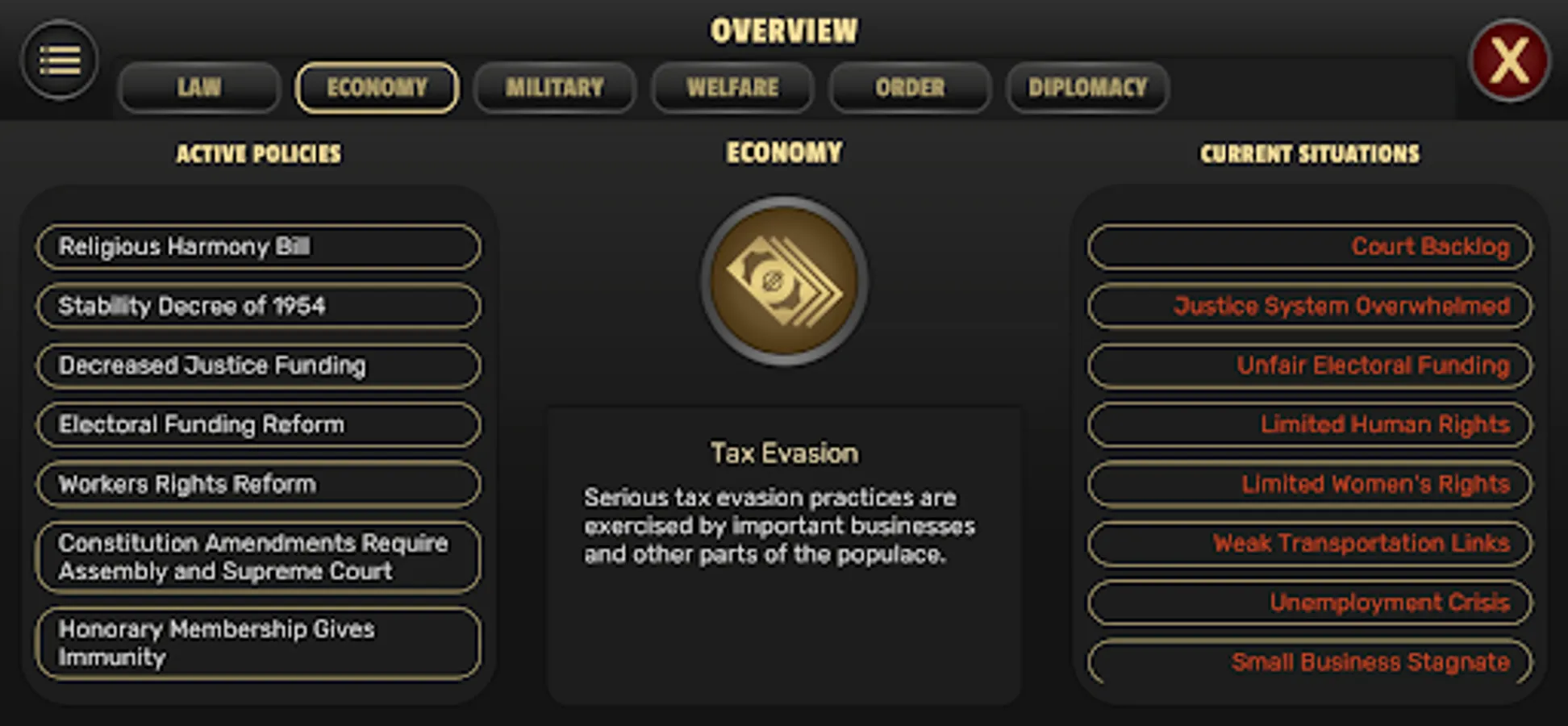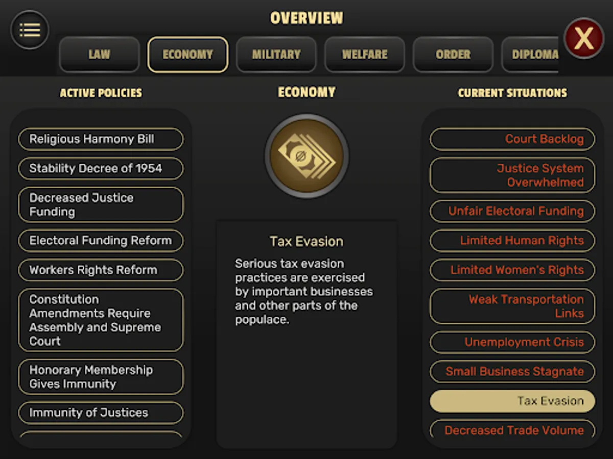- Every choice has consequences: Make difficult choices on security, economy, diplomacy and more.
