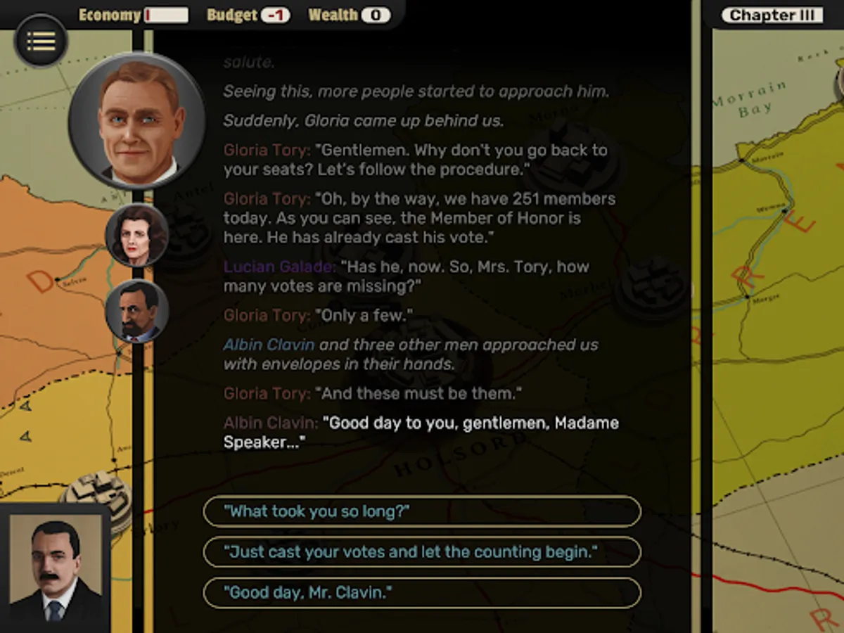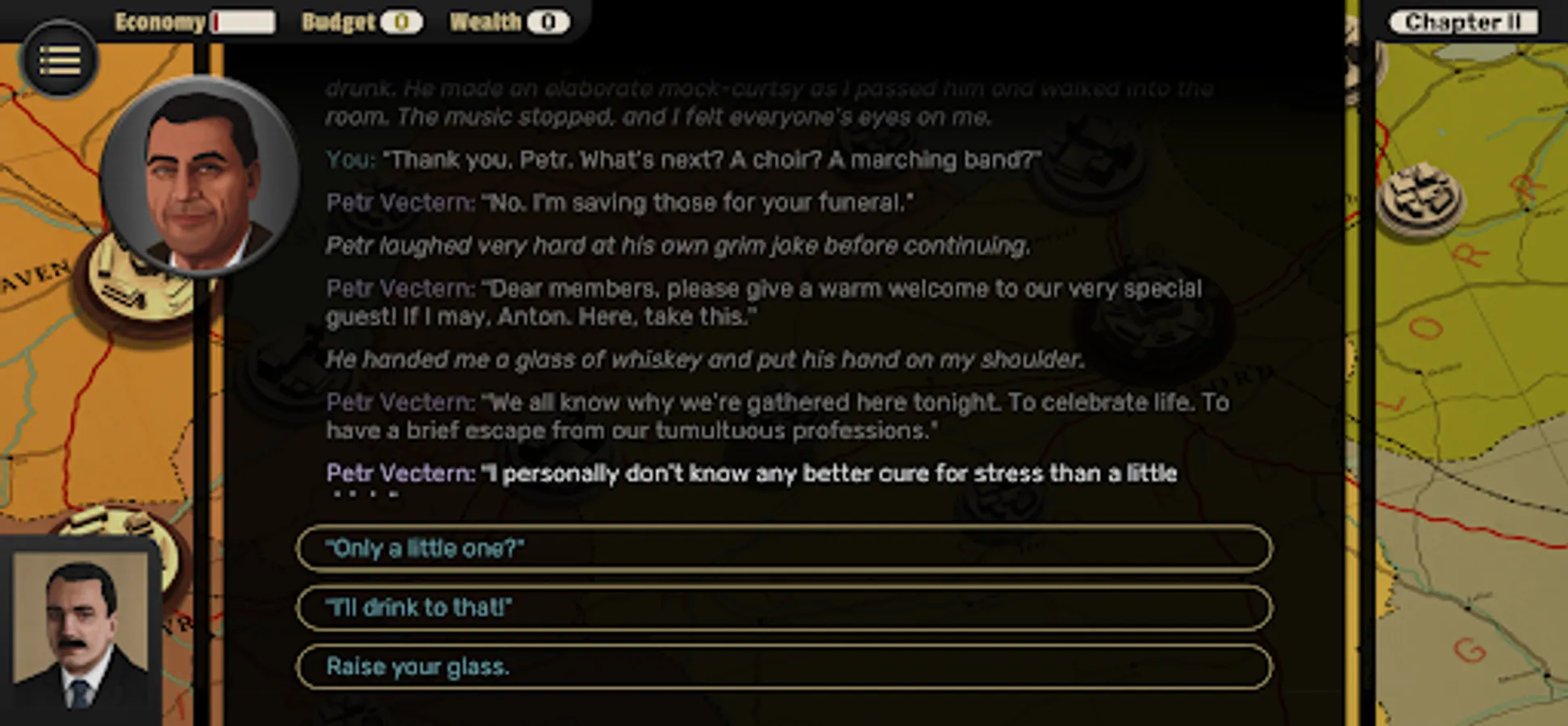 - Weighty, dramatic conversations: Navigate intricate conversations in this 400K-word branching political drama.