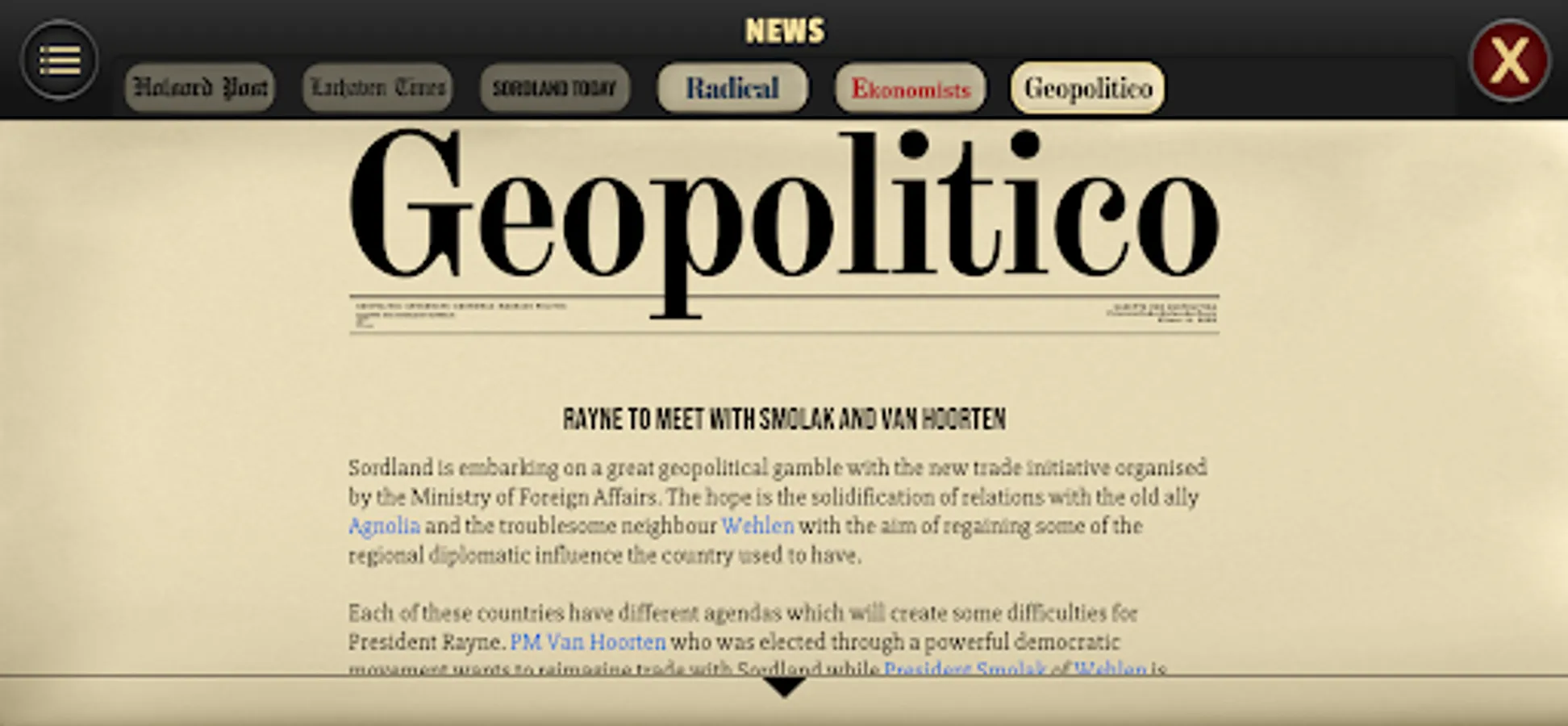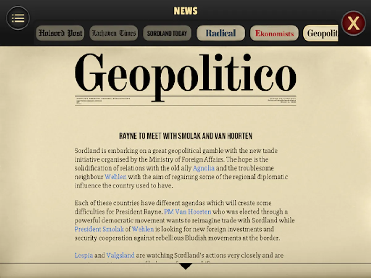 * “The nuanced dilemmas it presents, set against a detailed and convincing backdrop of mid-20th century history in a fictional world, make it one of the most fascinating political strategy games of the past several years.” - VICE