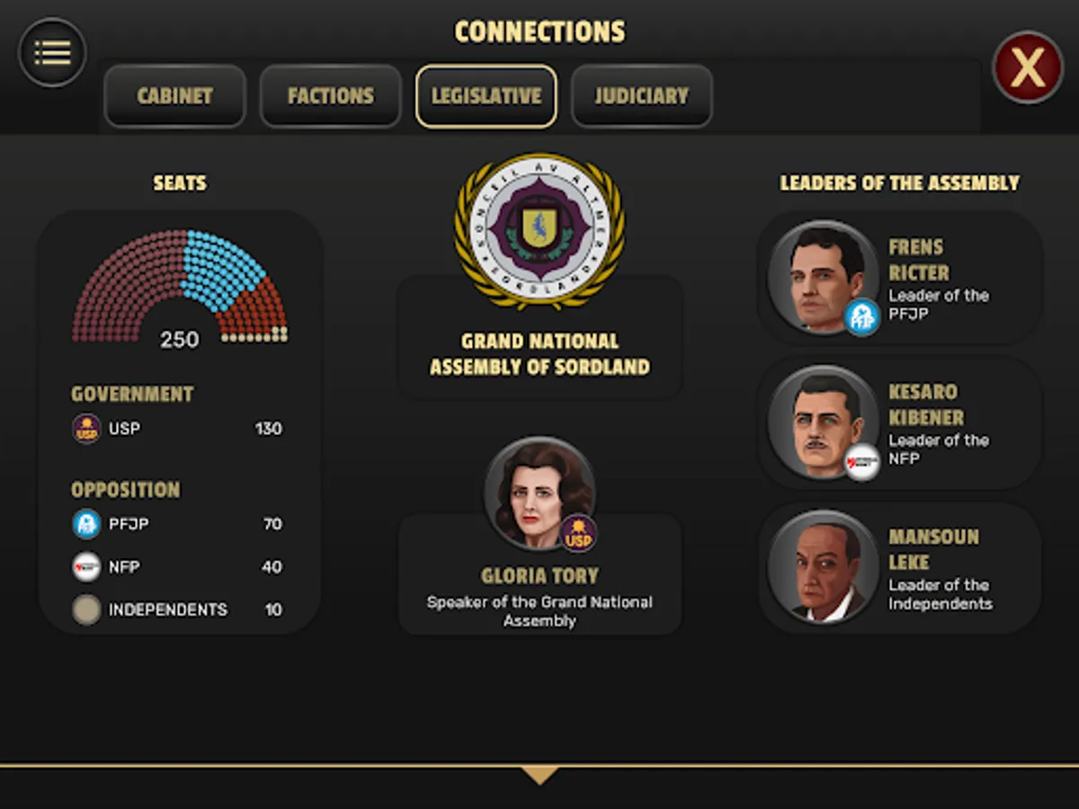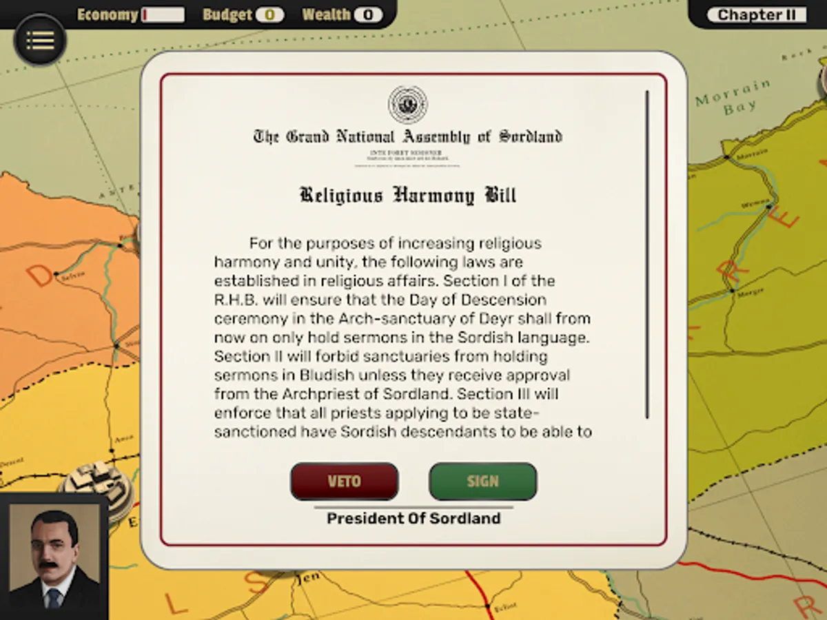 As President Rayne, lead the nation of Sordland in your first term of this text-based RPG. Navigate a political drama driven by conversations with your cabinet members. With looming war, rooted corruption, economic crisis and reform needed, the choices fall on your shoulders.