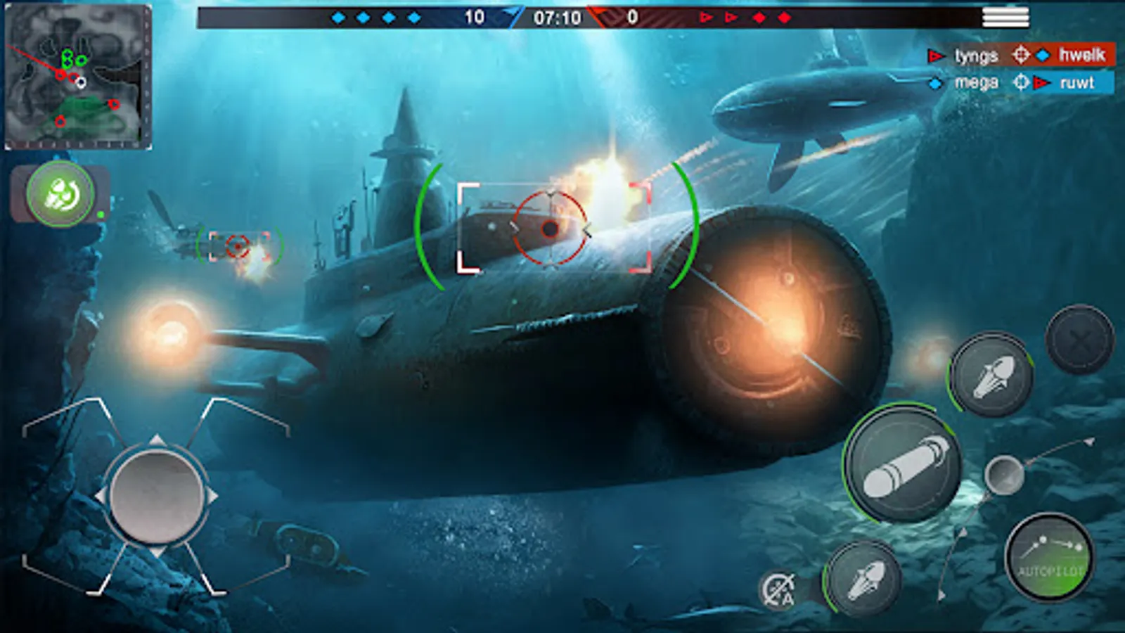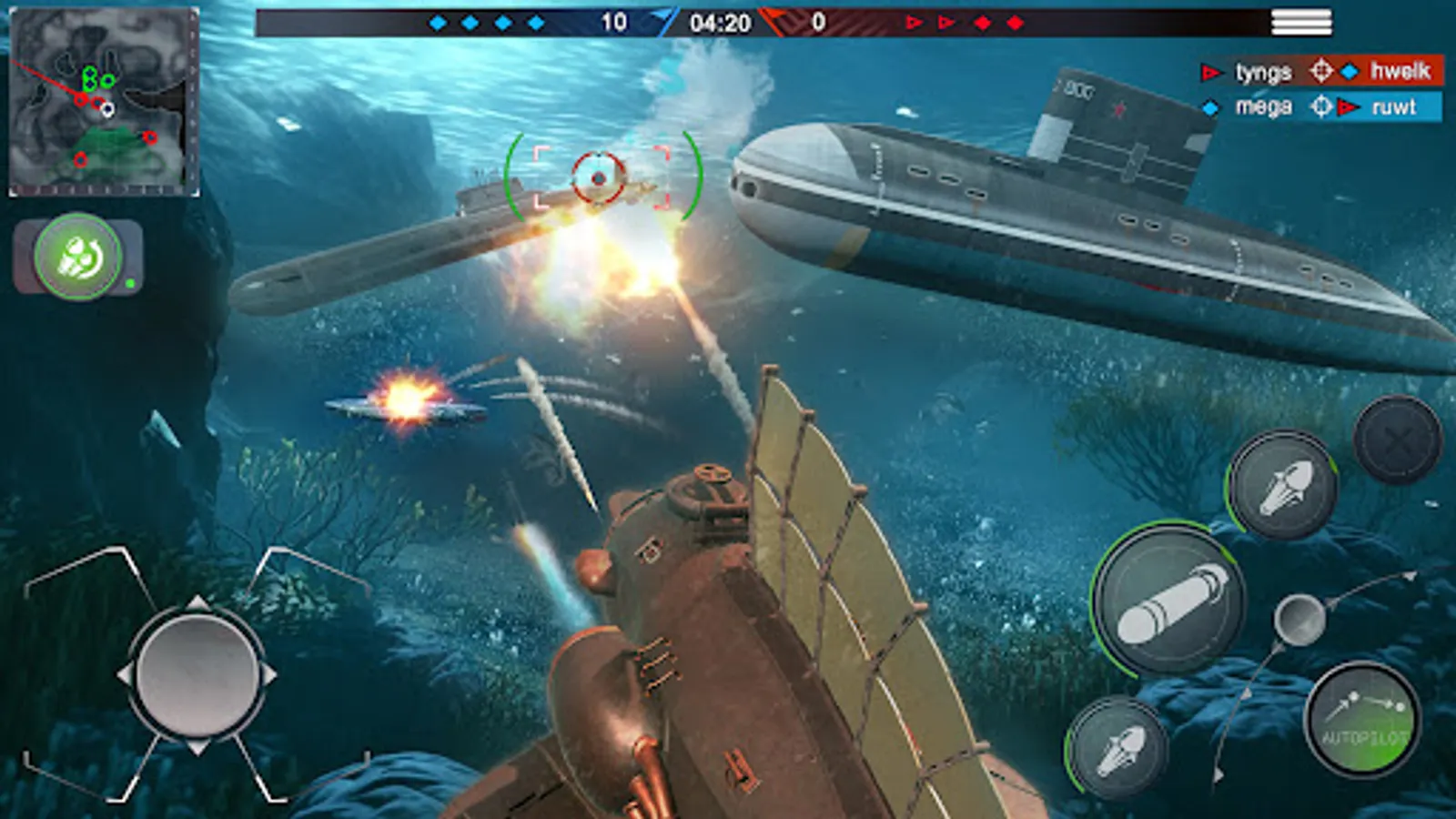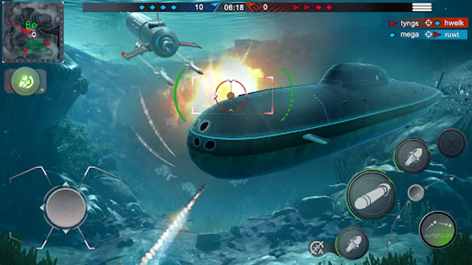 - HD graphics under the ocean with mines, boats, and cruisers in the submarine simulator.