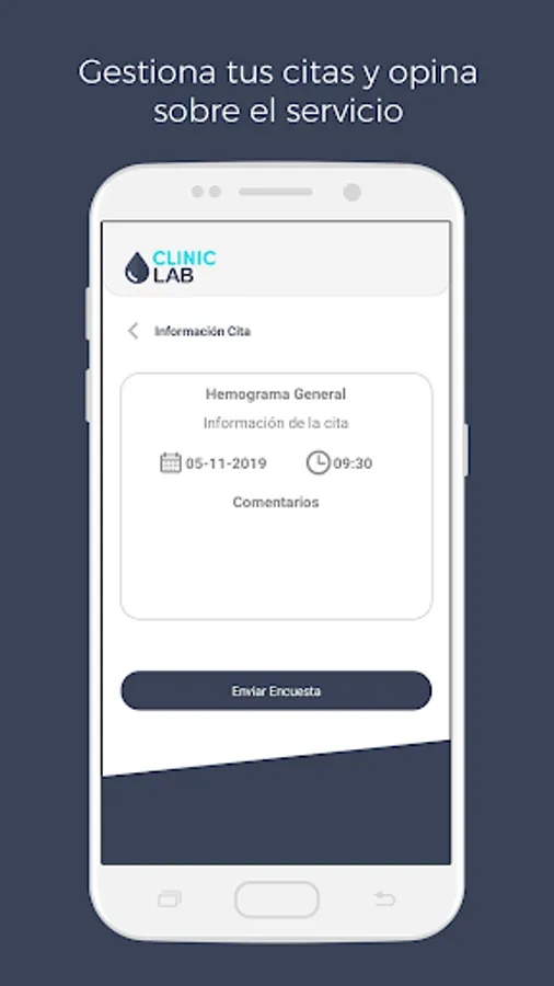 ClinicLab allows you to manage the appointment request for your company and also keeps a personalized follow-up of your clients reminding them of their reservations and allowing you to send private messages.