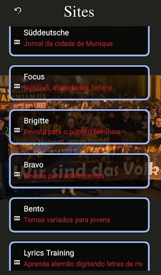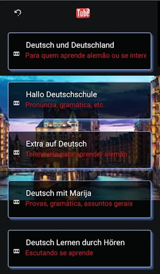 This application offers a wide range of links to applications, sites, channels and YouTube videos, movies, Netflix, etc. Everything for you to learn or perfect your German.