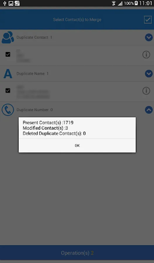2. Duplicate Contacts Remover : Removes all above identified exact number duplicates & makes you contacts clean.