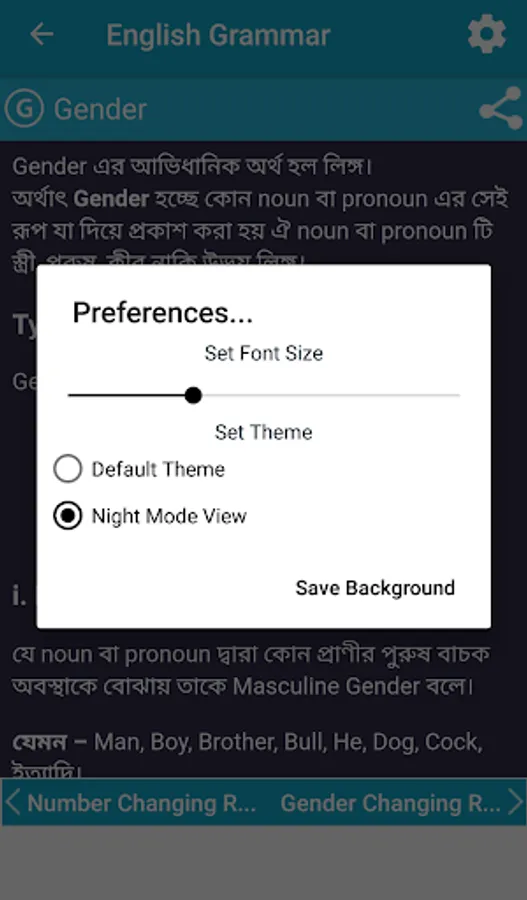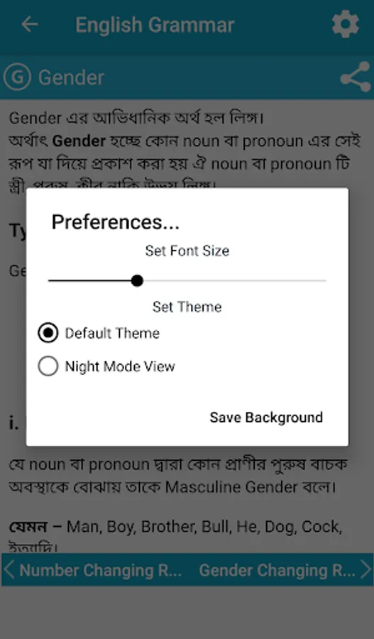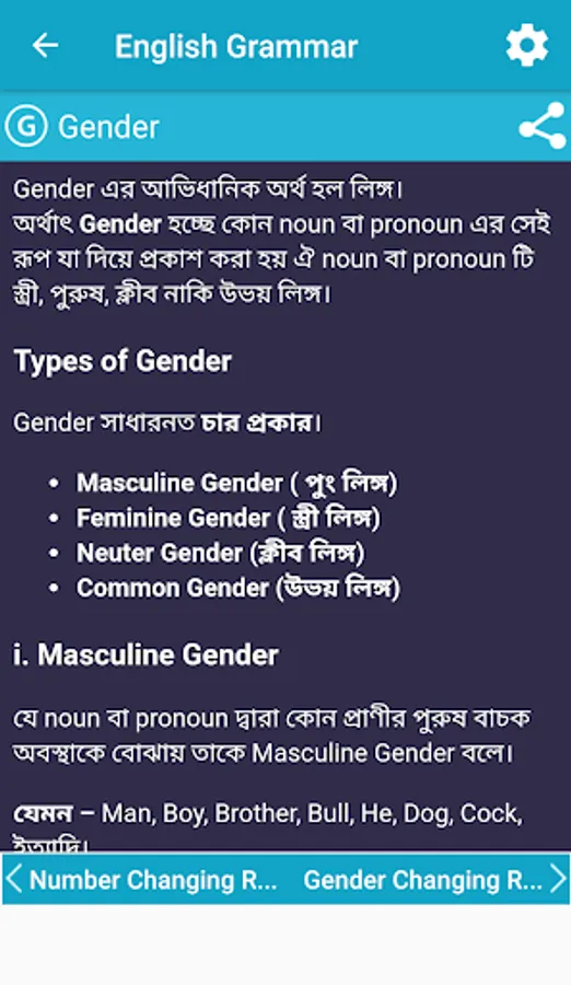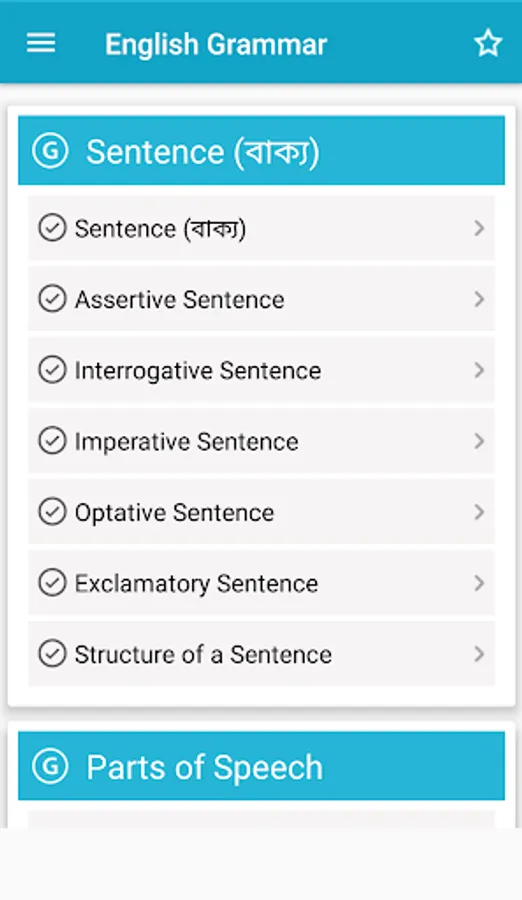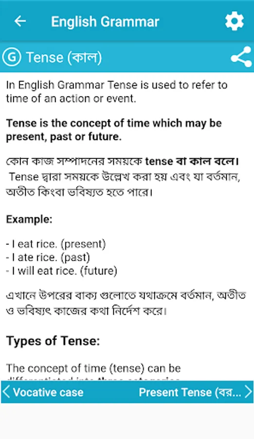 English Grammar (English-Bangla) is a language learning application that provides a complete basic idea of grammatical elements of English. The topics of the grammar are thoroughly listed in the app where you can easily find your desired topic. Basically this app provides you with a complete grammar book.