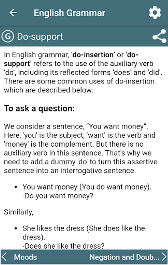 This app will not only help you with learning basic grammar but will also help you with confusing aspects of grammar, which is a pretty unique feature. Most grammar learning platforms share knowledge on the basics only; while our project includes solutions to everyday issues that we face in English grammar, and we enrich our app on a regular basis. If you still don’t see the exact information you need, you may send us a request via our contact section, or wait until we add what you need.