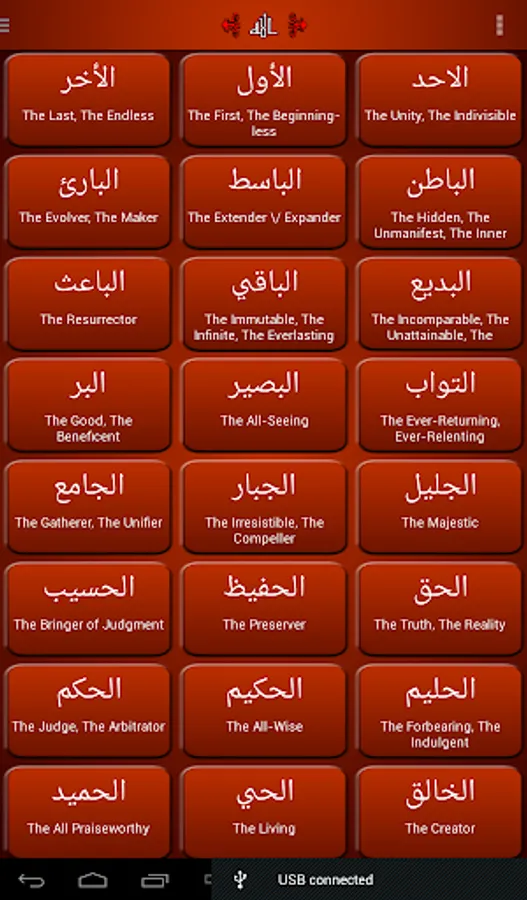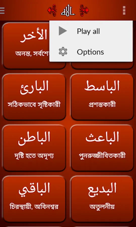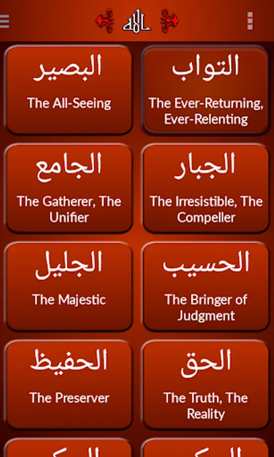 The 99 names of Allah; أسماء الله الحسنى ( asmā allāh al-ḥusnā)