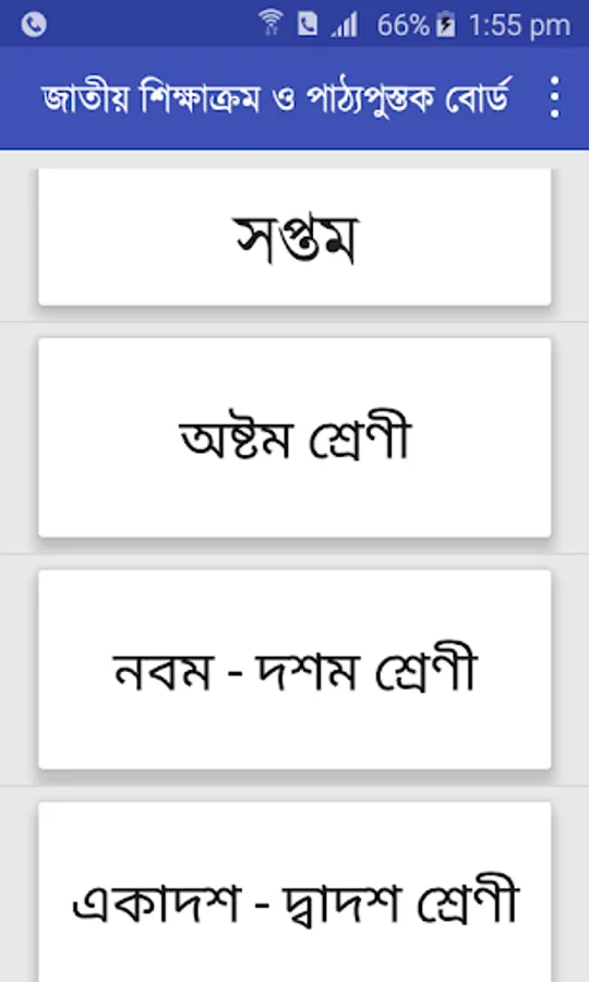 Books of 1st class, 2nd class, 3rd class, 4th class, 5th class, 6th class, 8th class, 8th class, 9th, 10th, 11th and 12th class by National Curriculum and Textbook Board (NCTB) can be read from the app.