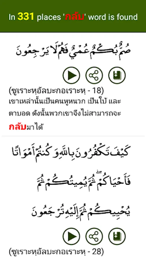 2. Search Quran Threads Use Thai / Arabic words to find related Ayats.