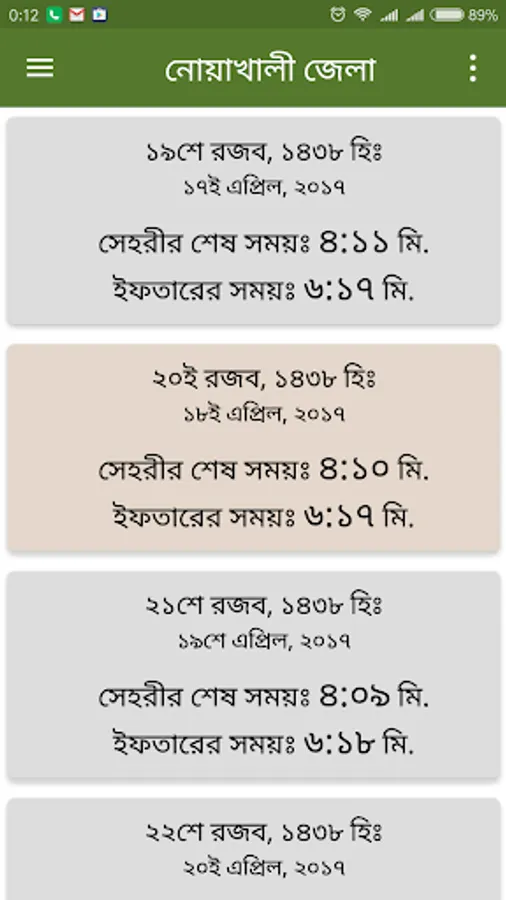 As soon as you open the app, you will get today's Iftar and Sehri time as your district.