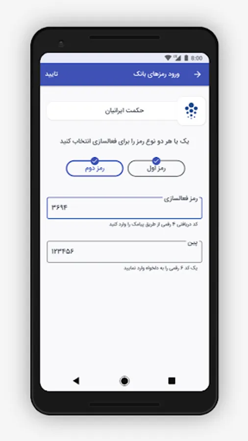 The Aras application has been developing a one-stop-shop for password-protected passwords to protect the security of the user's bank card passwords. In this application, the first and second ciphers are produced once, with valid time for use of any password only 30 or 60 seconds. This password expires after the expiration of the specified time, and each password can be used only once. By refusing the previous password, a new password is generated and displayed to the user.