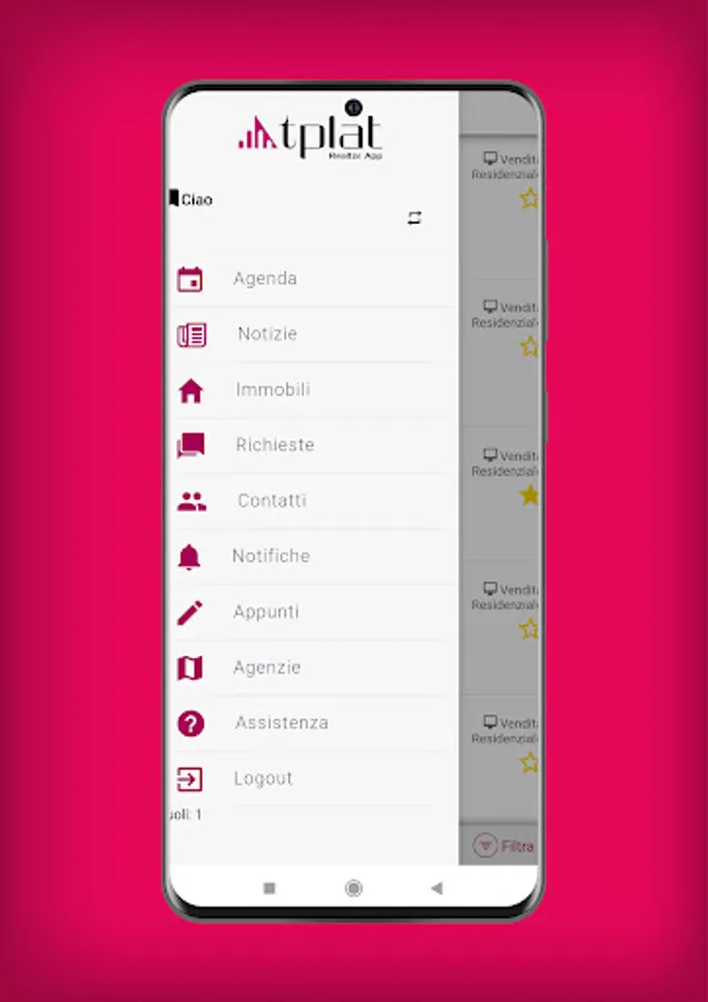 TPlat realtor App is the tool that supports you in carrying out your business, a powerful ally for the dynamism of your work, to manage your customers and your appointments in total autonomy, in any place and at any time!