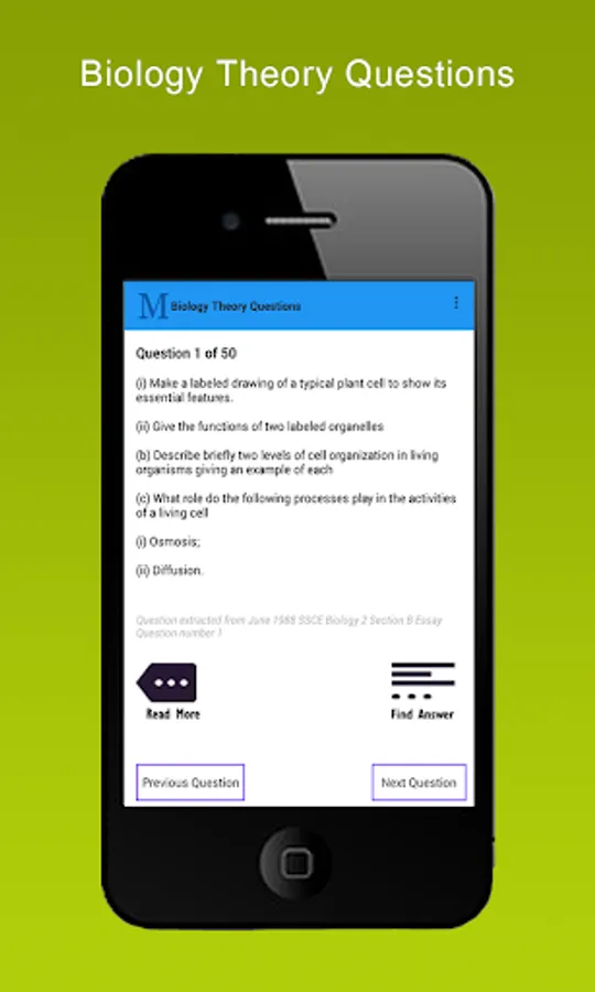Full Biology app covers questions from examinations like WAEC, JAMB, GCE, GCSE, NECO, and KCSE.