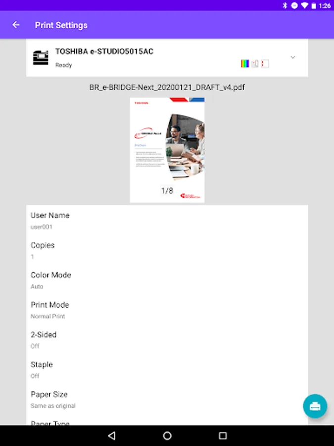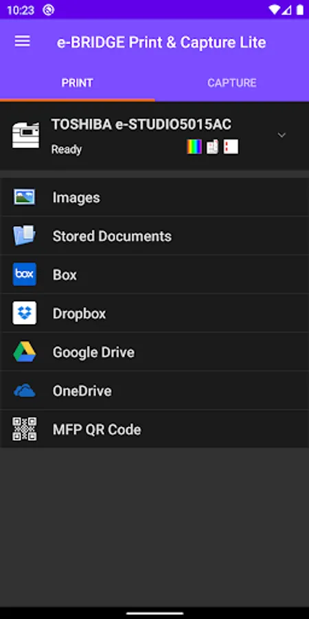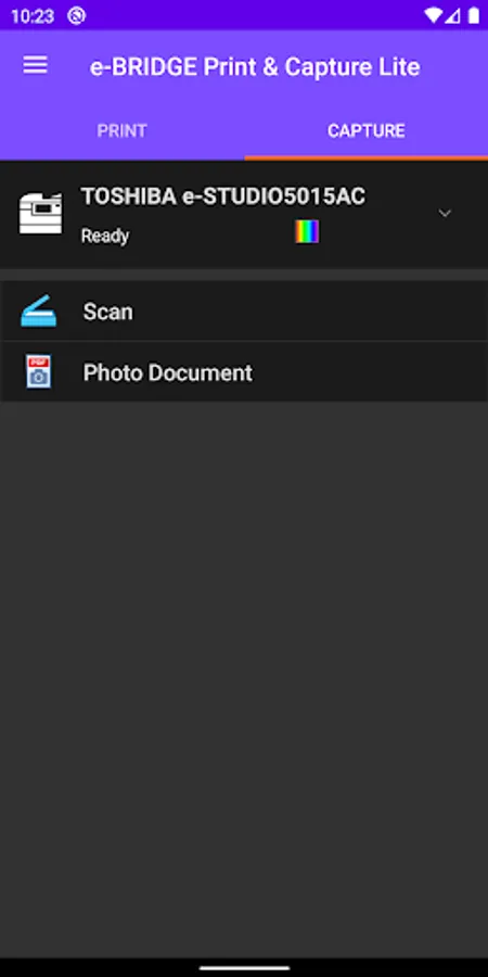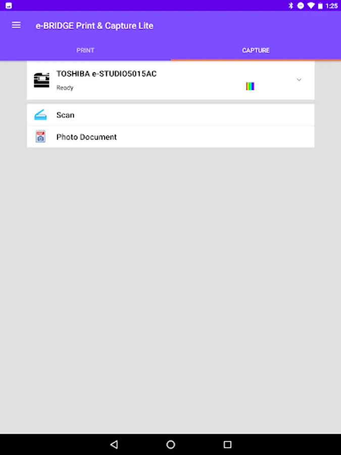 e-BRIDGE Print & Capture Lite is an application that allows you to print and scan from TOSHIBA MFPs utilizing your Android device.