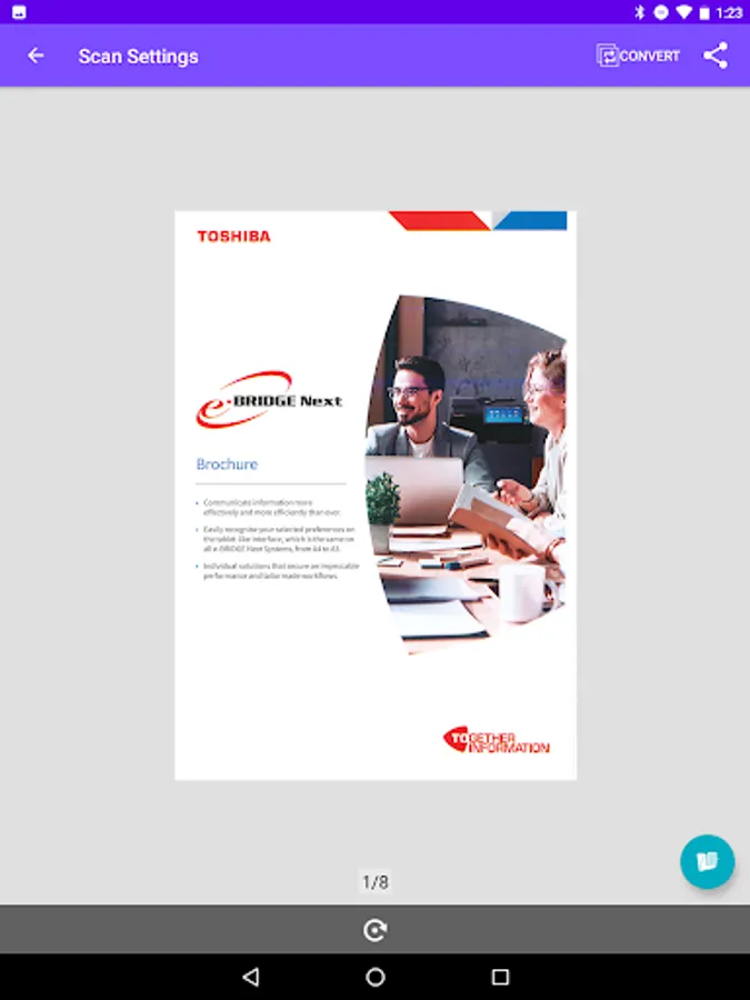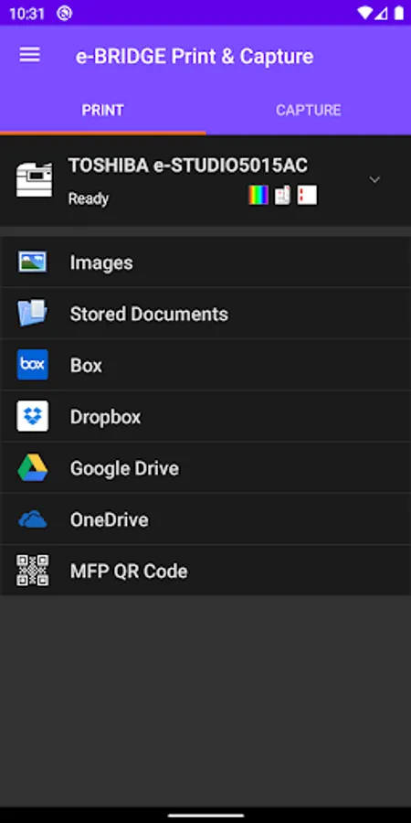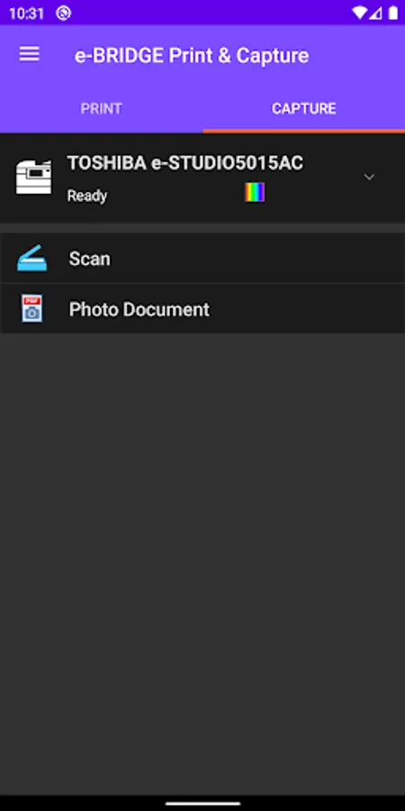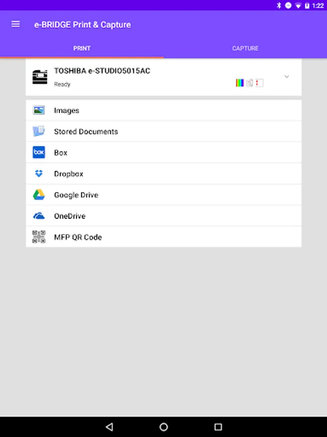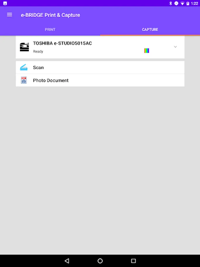 e-BRIDGE Print & Capture is an application that allows you to print and scan from TOSHIBA MFPs utilizing your Android device.