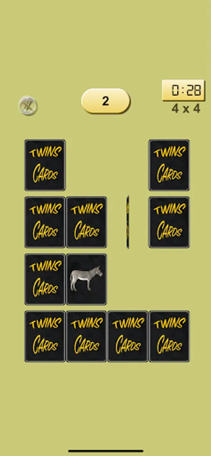Golden Twins Cards is a card game which is placed face down on a surface and reversed face up in each turn two by two. The objective of the game is to find pairs of equal cards. The game ends when the last pair has been picked up.