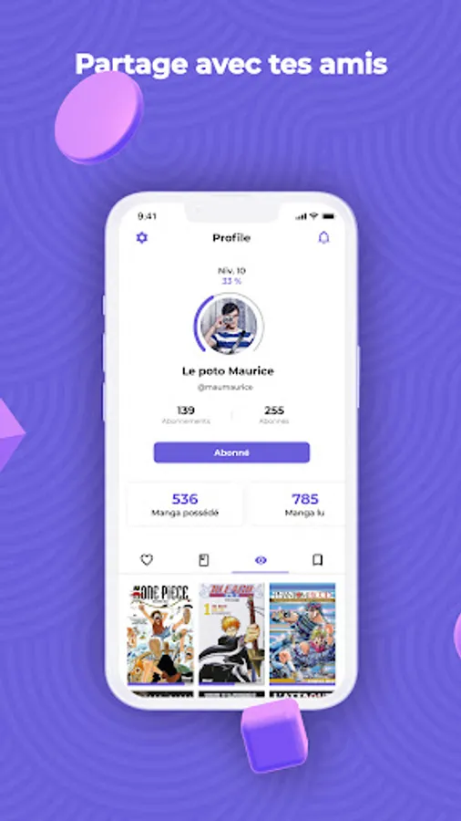 collection. Indeed, any user will be able to follow the status and progress of their subscribers' collections as well as the interests of their subscribers. It is possible for the user to recommend works to his friends present on the application. Tosho is an application preserving the social character of building a collection.