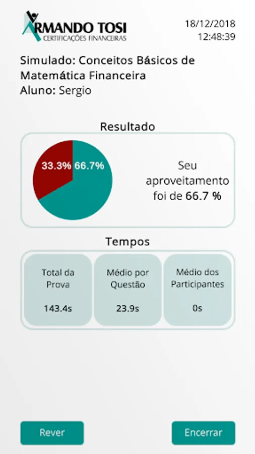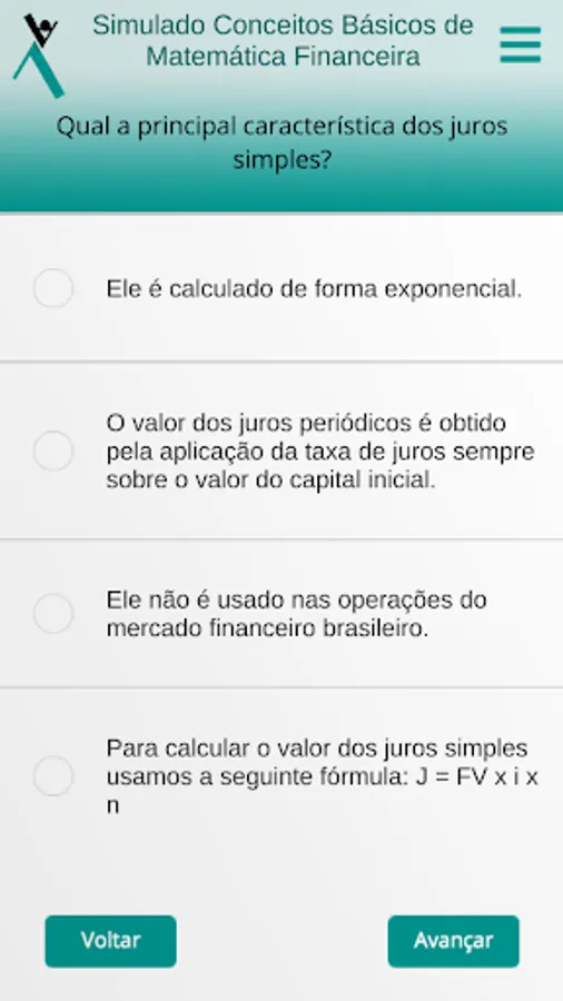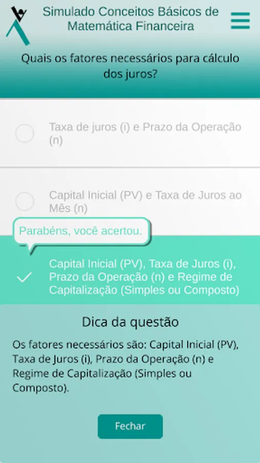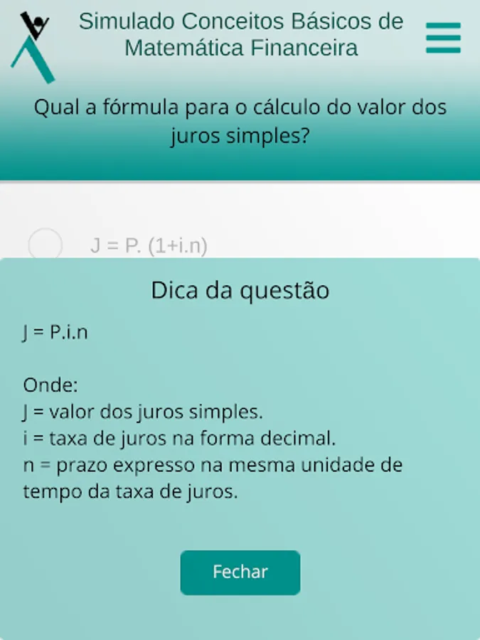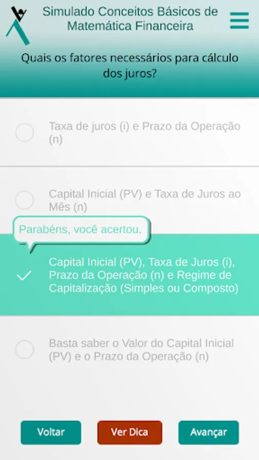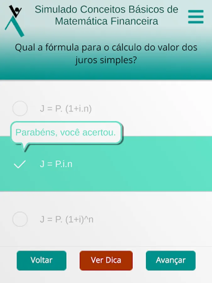 Once inside the app, the student can perform the simulations, with automatic correction, comments on each question and indication of complementary studies. The tests can be done as many times as the student wants, within the validity period of the code.