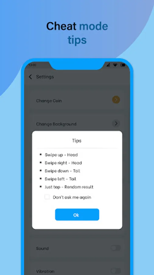 Cheat mode is the amazing feature of the Coin Flip Toss for Head/Tail app. You can have fun with friends by cheating them by flipping a coin.