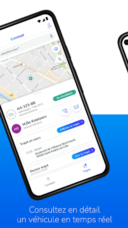 - Suivez les véhicules de votre flotte sur une carte