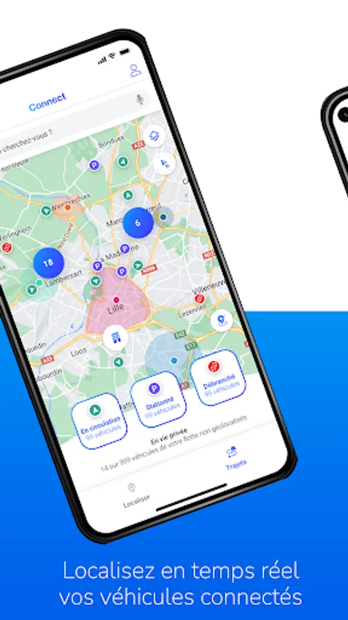 - Visualisez le statut de vos véhicules (stationné, en circulation…)