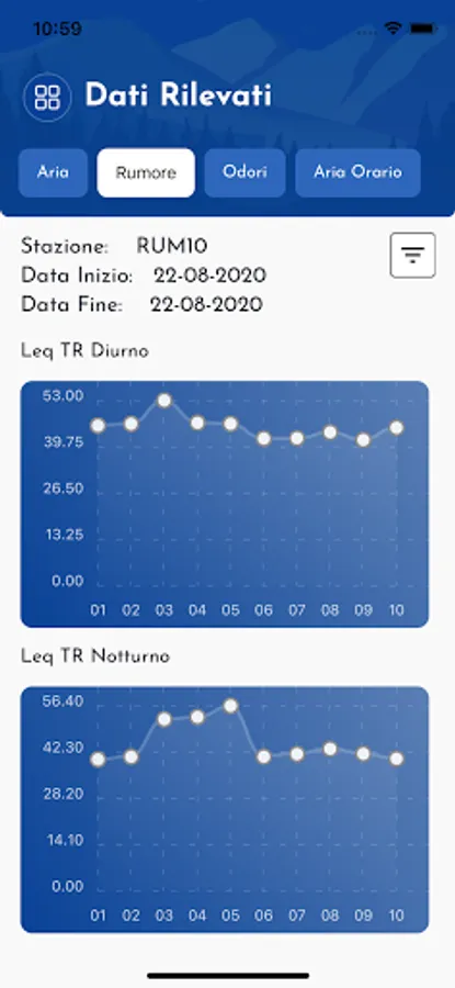Noise: 3 stations, equipped with weather sensors, allow the continuous acquisition of data relating to the noise introduced into the external environment.