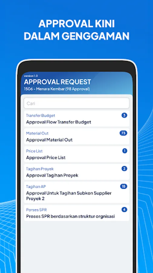 Application for approving posted requests in PT TOTAL Bangun Persada