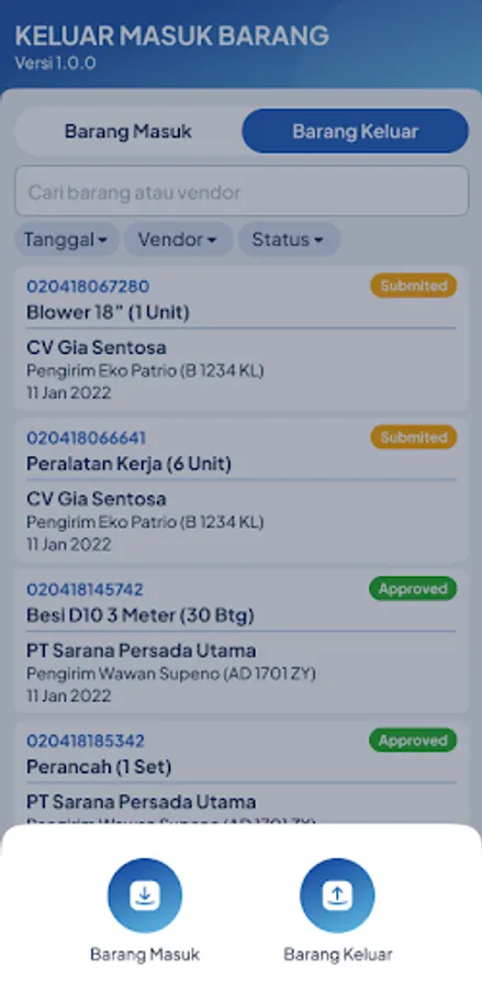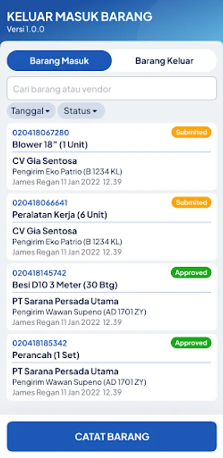This application allows users to take notes of any incoming or outgoing items from the premises of PT. Total Bangun Persada projects.