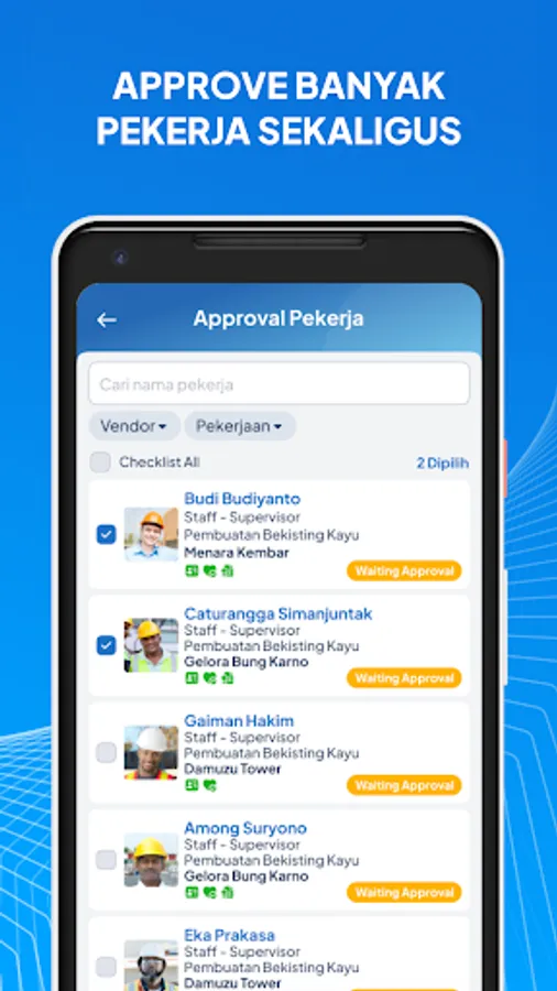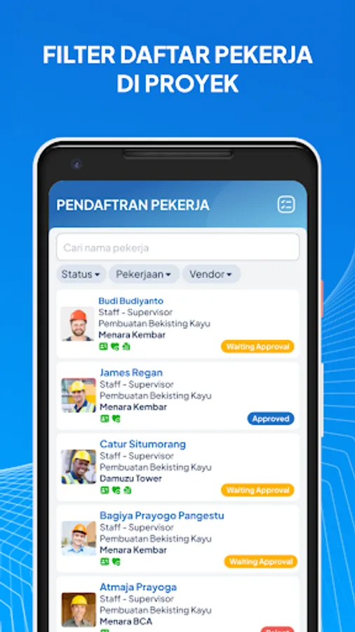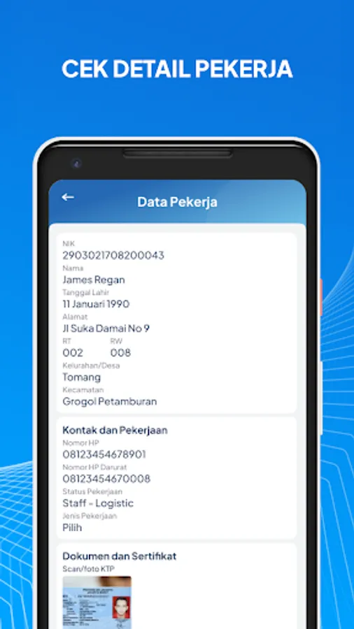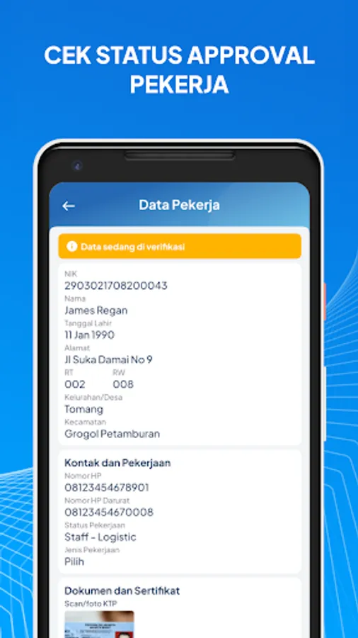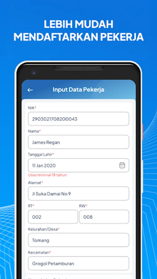This application allows Mitra of PT. TOTAL Bangun Persada to register new workers.