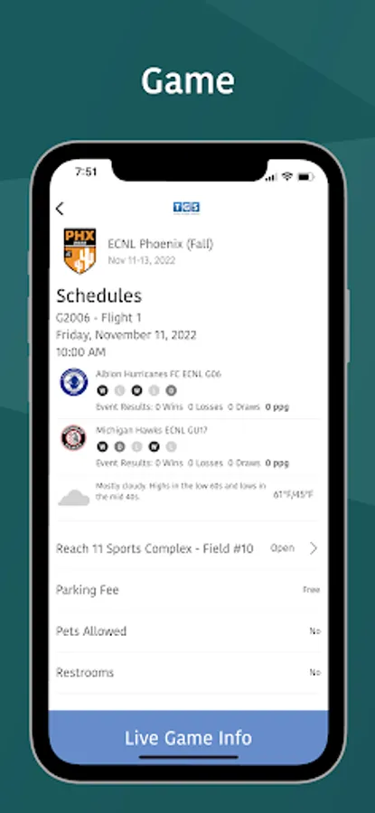 Elite Clubs National League and Total Global Sports have created a custom mobile app that displays all league information. The app allows you to search clubs, teams, players and National Events. Schedules are easily assessable along with conference standings. The app design was created on simplifying your experience to navigate through your individual needs. Not only is the design simple and clean but its performance is fast and reliable.