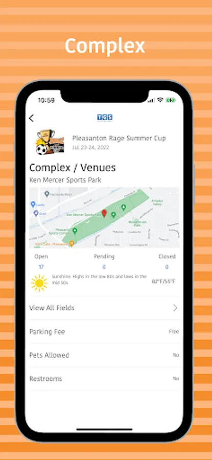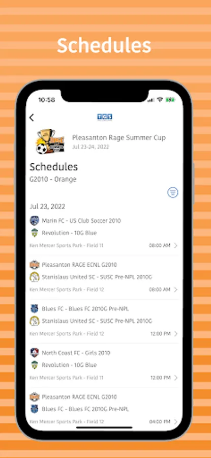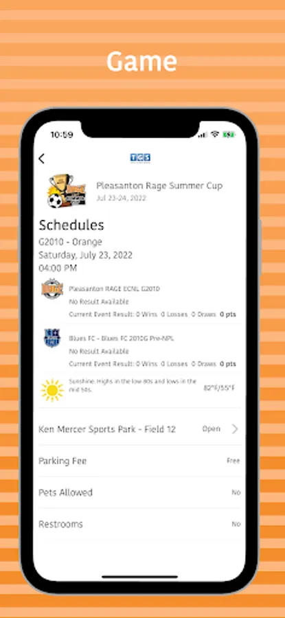 Pleasanton Rage event mobile app allows you to access all information about each of our events. This includes schedules, standing, complexes/venues, parking info, and weather. As a team admin you can use the app to mange your team info along with the ability to register to the events through the app. We look forward to seeing you at our events.