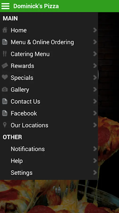 Download the App for delicious deals from Dominick’s Pizza – any way you slice it! With locations in Parkville, Perry Hall and Lutherville, Maryland, there is a Dominick’s close to your home, favorite shopping area or office. Scroll through for a full menu of pizza, subs, ribs, pasta, wings, sides, desserts and soft drinks available for carryout, delivery and catering. Of course, you’re welcome to hang out at the counter for a quick lunch, too! Tap the App for amenities like: