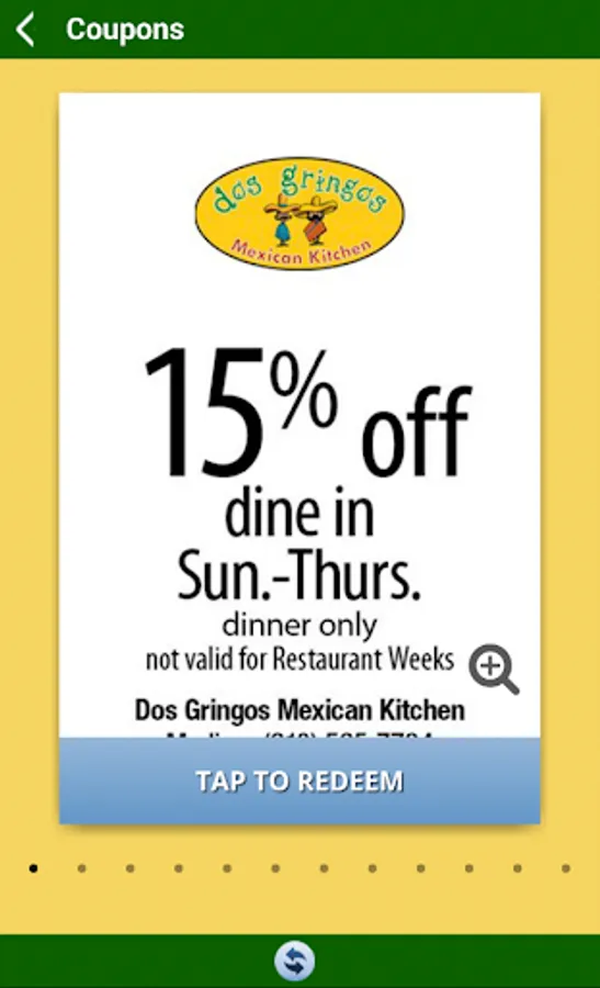Save some dinero when you download the free app for Dos Gringos Mexican Kitchen. You can keep up to date, peruse the menus, make reservations or score some merch – all from the touch screen of your mobile device. And remember to BYOT and try some of Dos Gringos’ delicious mojito and margarita mixers like papaya pineapple, enjoy Taco Tuesday and their award winning guacamole!