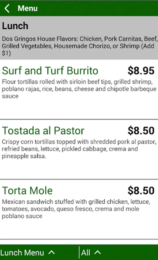 The Dos Gringos app provides: