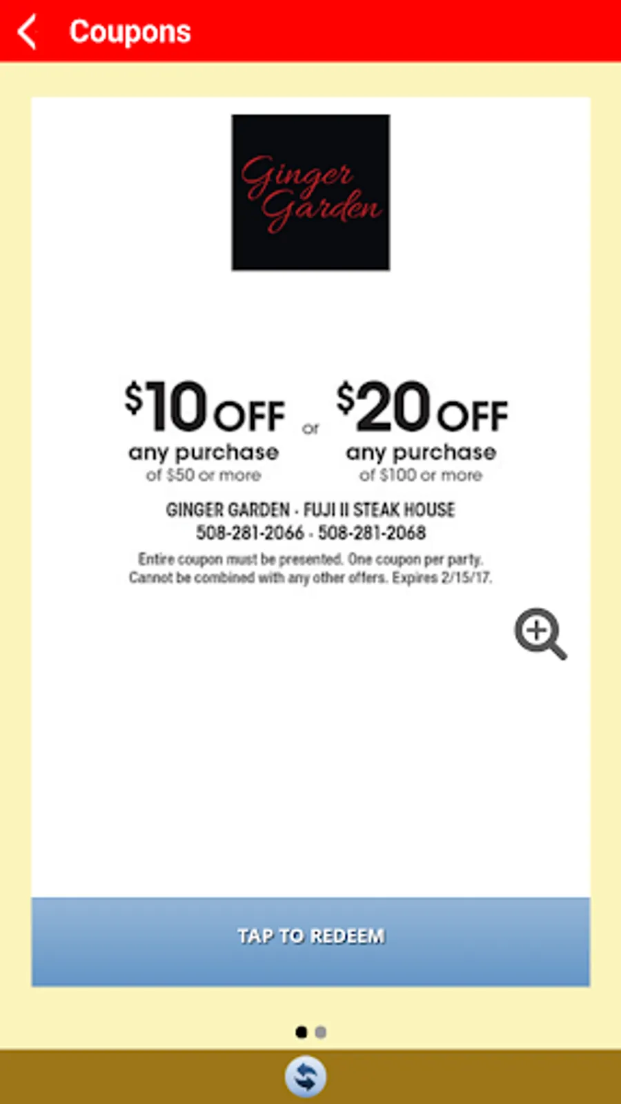 Download the App for delicious deals and great offers from Ginger Garden, a popular Japanese steak house in Marlborough, Massachusetts. Scroll through for online ordering options, a full bar, carryout and catering, loyalty rewards and coupons. Check out the sushi and sashimi, teppanyaki, soups, rolls and combos right from your smart phone whether you’re planning for a big game party or a gathering with family and friends. Tap the App for amenities that include:
