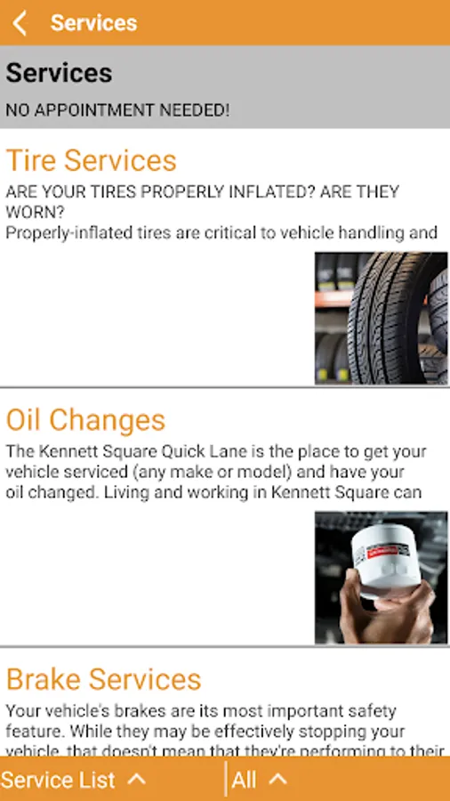Download the App for Quick Lane at Kennett Square for information and special offers right at your fingertips. Stay up to date on our current limited time offers, check out our credit options and apply right from the App! Scroll through for services from tires and brakes to engine maintenance and oil changes.