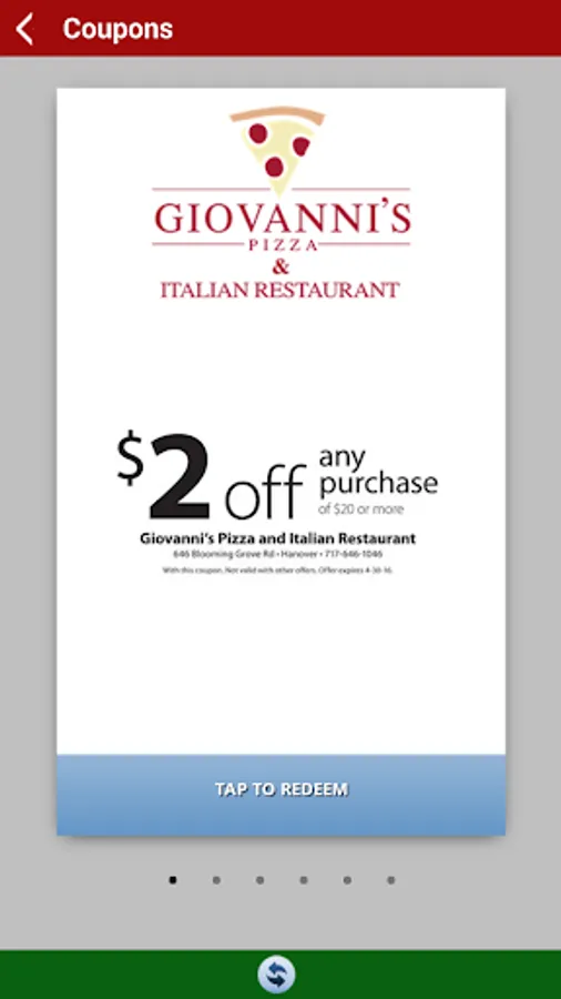 The App from Giovanni’s is FREE and you will receive your first offer after it is downloaded.