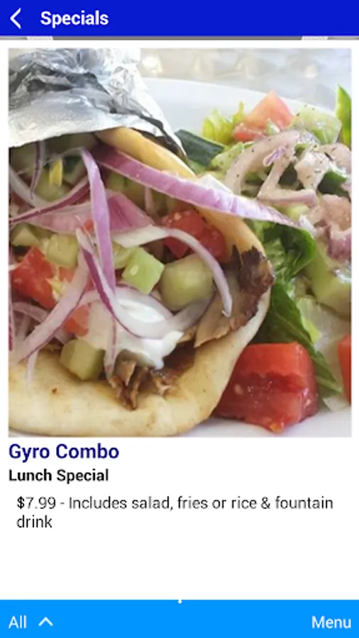 Download the App for Gyromania Grill and go crazy for all the savings, specials and delicious authentic Greek food. Scroll through and check out the special offers and see what deliciousness awaits you. Using the freshest, high quality ingredients, Gyromania always has spits of tender meat ready to be sliced and slid into gyros or souvlakia. Take your taste buds on a Mediterranean adventure with a Pikila- a trio platter of stuffed grape leaves, humus and tzatziki or a sweet Galaktoboureko for dessert. Order a meal on-the-go, check out the on-site banquet options, request lunch delivery - conveniently from your smart phone or c’mon in to Gyromania Grill.