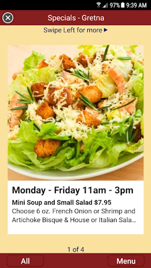 Gretna, Louisiana is the home of Specialty Italian Bistro, a multi-faceted dine-in, take-out and delivery eatery that has been serving the greater New Orleans area since 1991. From gourmet catering to pizza delivery, Specialty Italian Bistro brings their classic Italian cuisine and attentive service to every meal. Whether you choose pizza, sandwiches, calzones or full dinner entrées, your app-etite can save you money with exclusive offers, coupons, and rewards. Spice up your next catered gathering or stop in for a meal, dessert and a glass of fine wine for a truly Italian treat. Or tap the app and have your meal delivered or ready for pick-up. Specialty Italian Bistro – their name says it all!