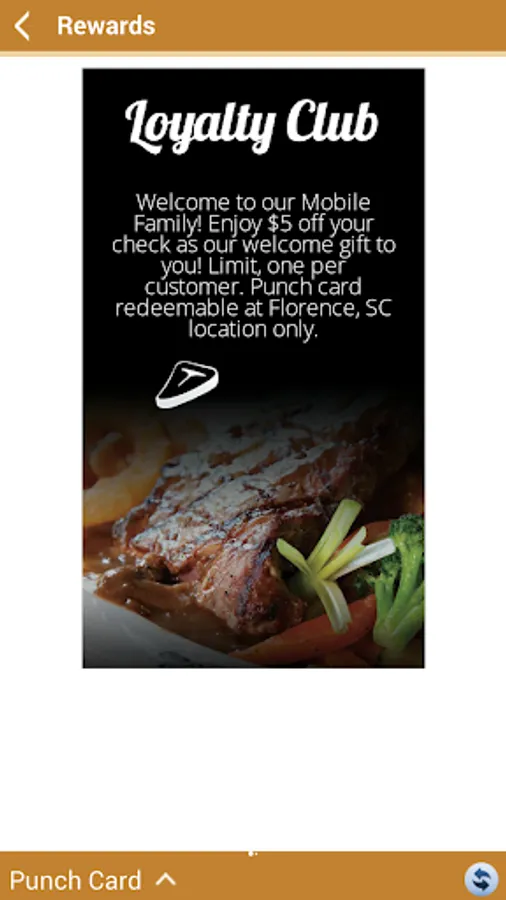 The App from Western Sizzlin, Florence, SC provides: