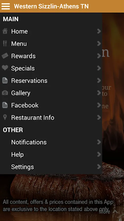 The App from Western Sizzlin provides: