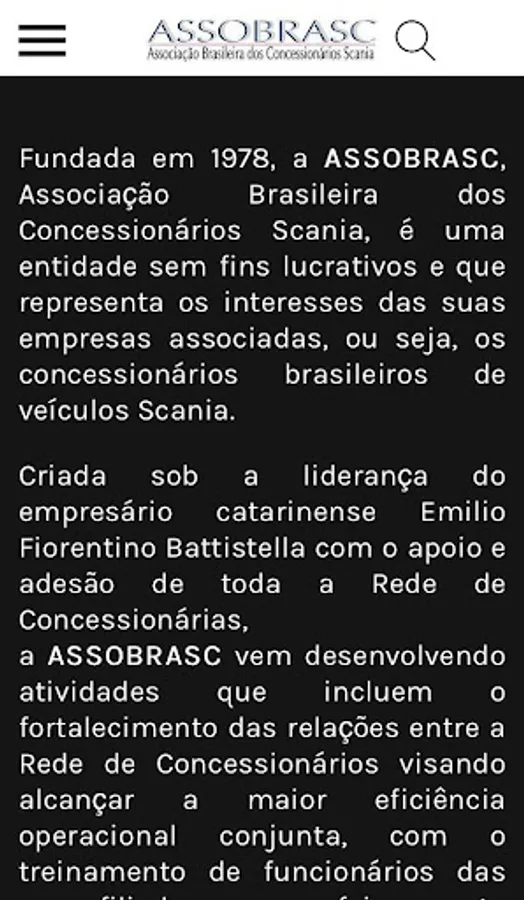 Founded in 1978, ASSOBRASC, Brazilian Association of Scania Dealers, is a non-profit entity and representing the interests of its member companies, ie the Brazilian dealers Scania vehicles.