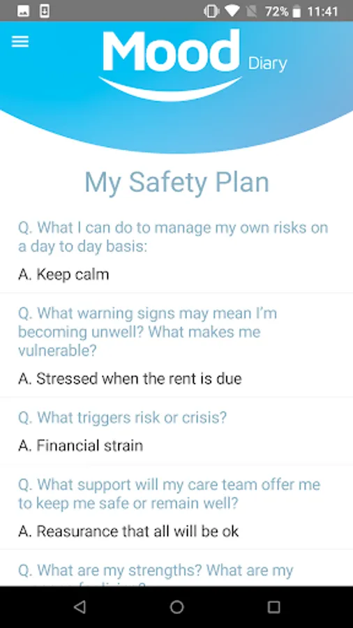 Integrated with your health record the information you record in The Mood Diary can be used to personalise your care and support plans in conjunction with your health care professional.