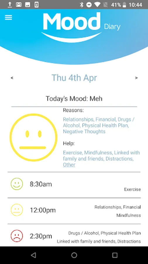 You can also use The Mood Diary to reflect on your previous moods and associated reasons to help you manage your own mental health better.