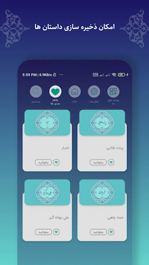 قابلیت های برنامه داستان های فارسی: