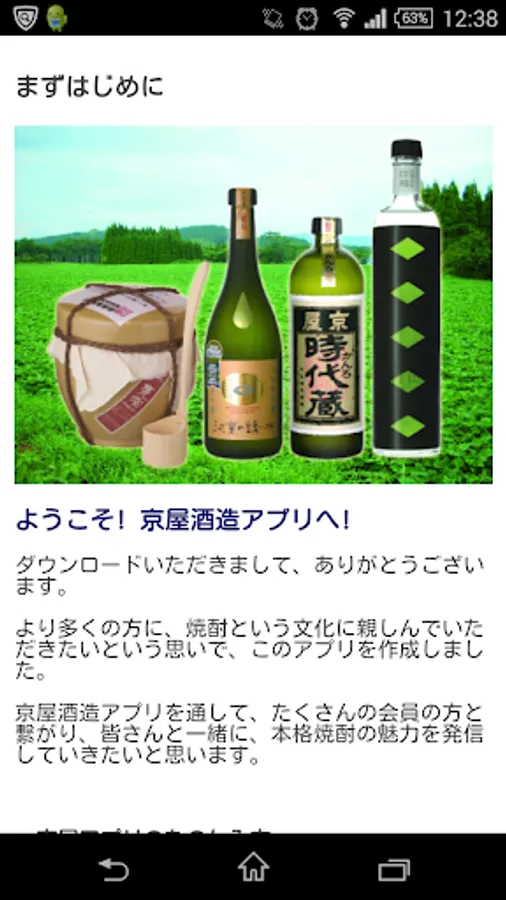 To more people, in the feeling that I would like you familiar with culture of shochu, we have created this app. Through Kyoya brewing app, shy person and 繫 of a lot of members, together with you, we would like to disseminate the charm of Shochu.
