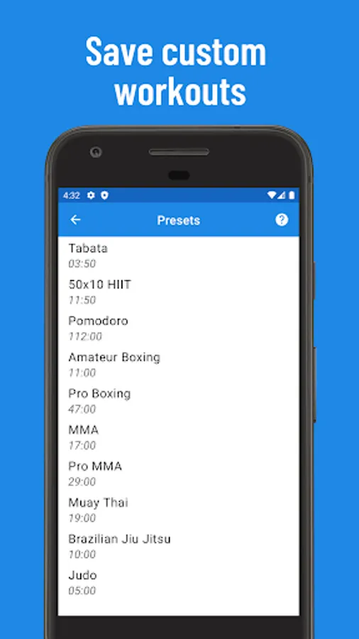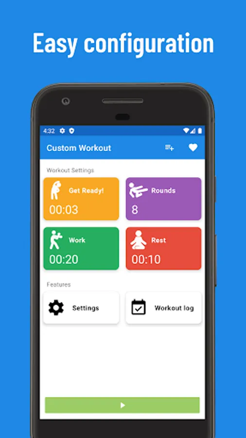 It uses a very intuitive user interface, designed to help you spend less time configuring the app and more time working out. It has big controls and big text on the screen, making it accessible for everybody. The application is easy to use and configure using the custom touch controls. You have only 4 parameters to set: warm up time, number of rounds, round duration and rest duration. All four have dedicated controls, you tap on them and you write the value using the numeric keyboard. Configuring the interval timer is as simple as tapping your pin. Also the app has various presets to choose from or you can save your own presets. That said, this application is probably the easiest to use HIIT timer on the market. This sports timer application counts your time like never before. The perfect Timer-beautifully clean, simple and reliable.