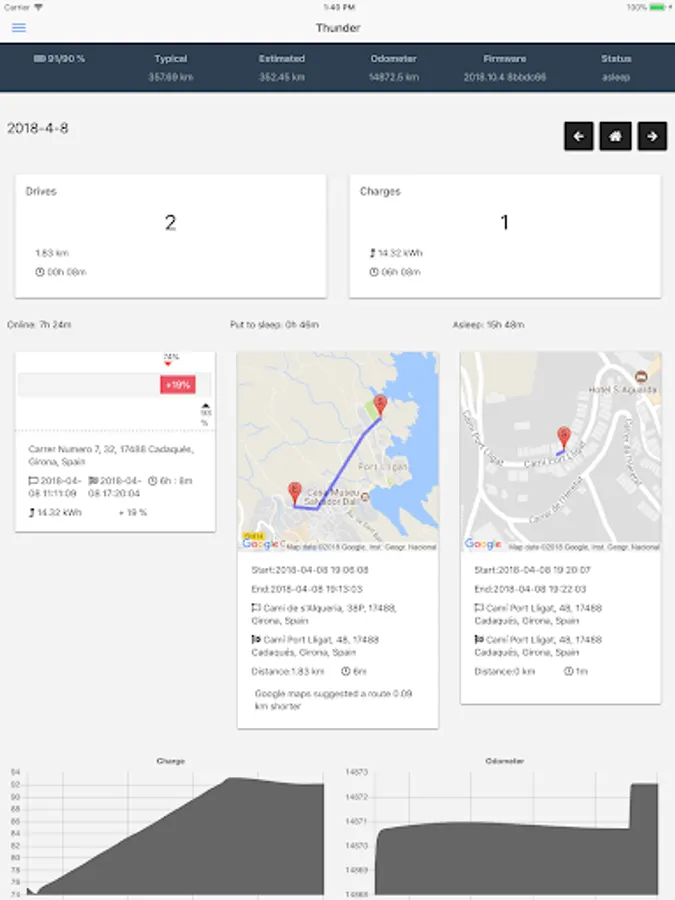 - charges summary: statistics of your charges, by location, by weekday, by month, charge map (radius of the circle in a location proportional to total energy added at this location)