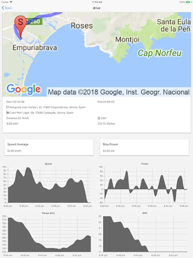 It not only shows the tipical information about your car, like speed, power and soc charts, I’ve tried to go further and I’ve incorporated, for example: